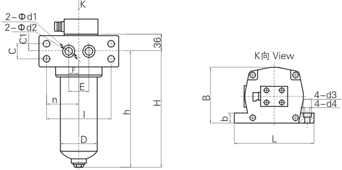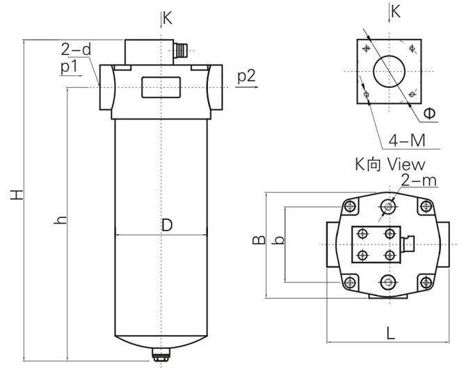該過濾器裝有壓差發訊裝置,當濾芯因污染堵塞致使進出油口壓差達0.35MPa時,便發出開關信號,此時應清洗或更換濾芯。