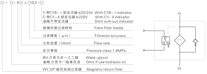 注:*為過濾精度,若使用介質(zhì)為一乙二醇,帶CYB-I發(fā)訊器,則過濾器型號為:GP·BH-A400x*Q2Y;WY·BH-A400x*Q2Y;濾芯型號為:GP·BH400x*Q2;WY·BH-A400x*Q2;