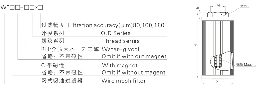WF吸油過濾器是安裝在油泵吸油口處,用以保護油泵及其他液壓元件,以避免吸入污染雜質,有效地控制液壓系統(tǒng)污染,調液壓系統(tǒng)的清潔度。