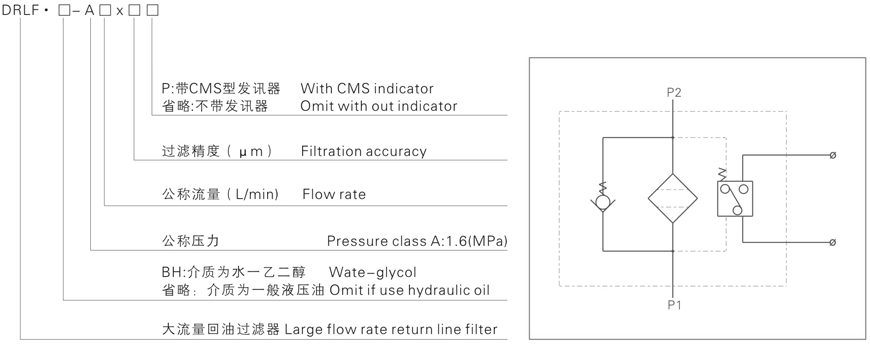 DRLF系列大流量回油過濾器安裝在液壓系統回油管路處,用來濾除油液中諸元件磨損的金屬粉末及橡膠質等,使流回油箱中的油液保持清潔。